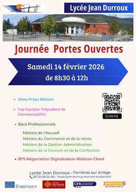 Journée Portes Ouvertes, samedi 14 février 2026 de 8H30 à 12H (vidéo immersive de l'établissement)
